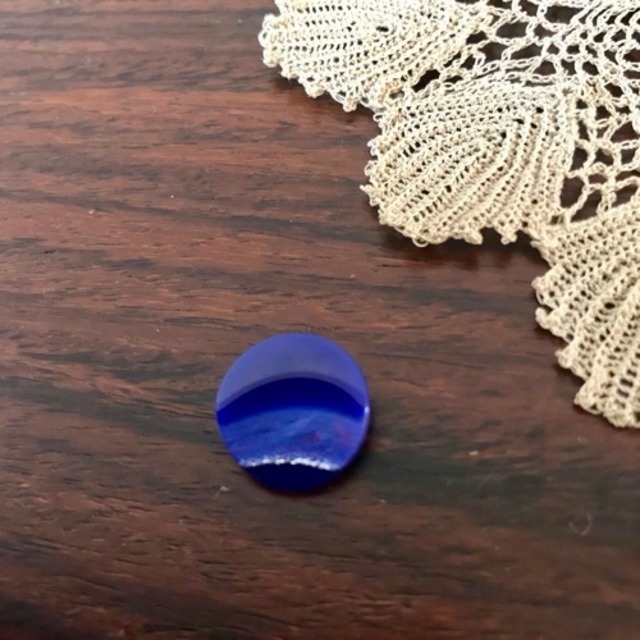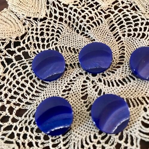 美しい深めのブルーにラメのラインが入り、層のようになったボタン。輸入もの。5個セットです。お洋服のワンポイントに。
