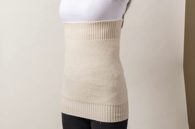 機内など思いがけず冷える乗り物の中で、エアコンの効いた室内、薄着のときでも、体幹は暖かくいたいときなどにちょっと持っていると役に立つアイテムです。羊毛ですので、直接お肌に着るのは若干チクチクしますので、下着や、あったかインナー、タイツなどの上に着用していただくものになります。