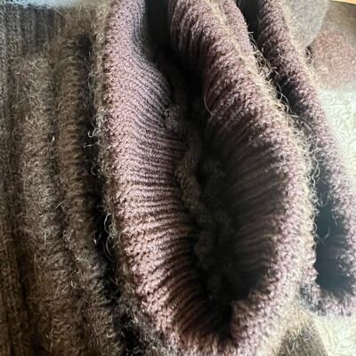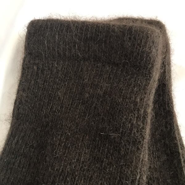ヤク毛100%です。高級繊維ならではの柔らかさがあるレッグウオーマー。色はヤク毛本来のナチュラルカラー。写真ですと黒っぽくも見えますが、こげ茶になります。お使いの画面の明るさにもよりますが、3枚目のお色味が近いです。