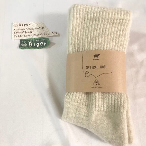 あたたかいモンゴル靴下Biger(ビゲル) ひつじウール100% (ナチュラルホワイト)羊毛靴下
