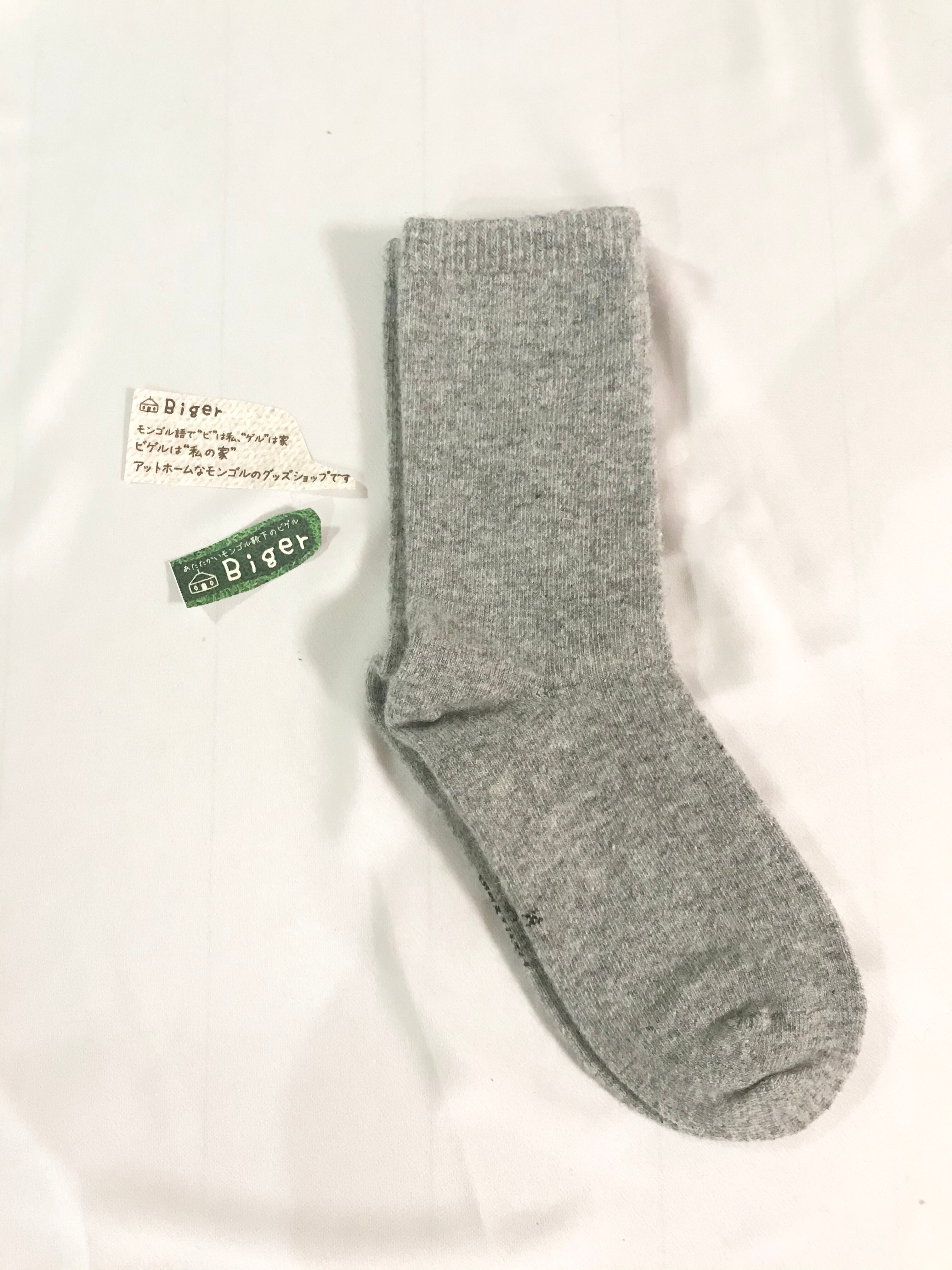 あたたかいモンゴル靴下Biger(ビゲル) ひつじウール100% (ライトグレー薄手) 靴下